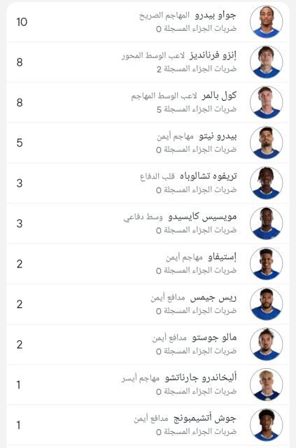 وجاءت قائمة هدافي تشيلسي كالتالي :
