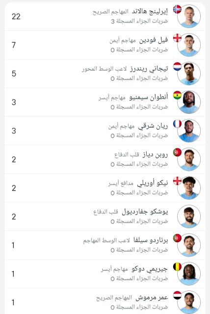 ترتيب هدافي السيتي في البريميرليغ قبل مواجهة نيوكاسل