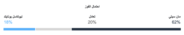 نسبة فوز مانشستر سيتي 62%، ونسبة فوز نيوكاسل يونايتد 18%، ونسبة التعادل 20%.