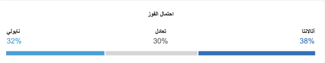 نسبة فوز أتالانتا 38%، ونسبة فوز نابولي 32%، ونسبة التعادل 30%.