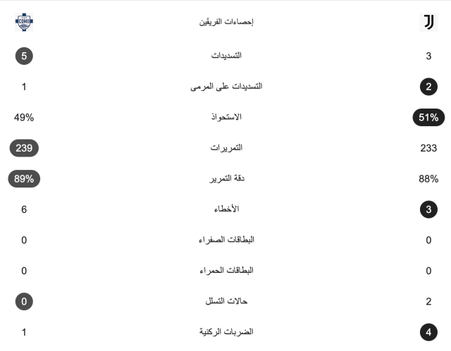الشوط الأول – كومو يتقدم بهدف نظيف على يوفنتوس