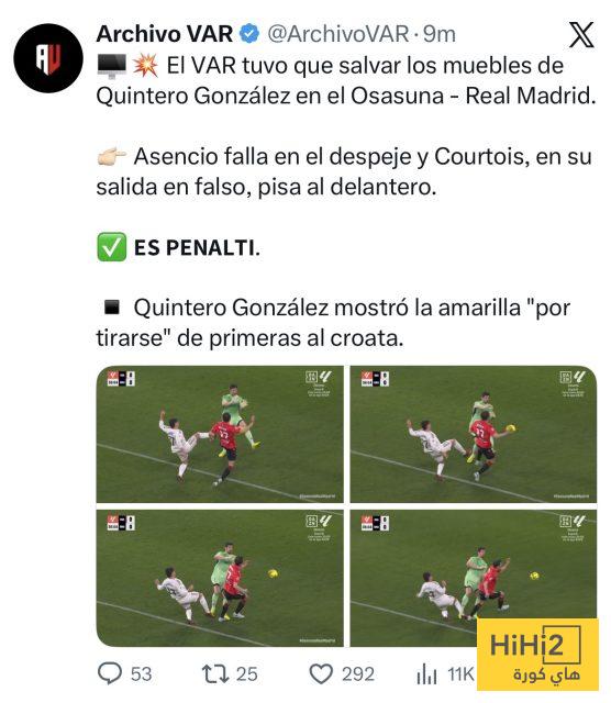 هاي كورة: وفقًا لمنصة أرشيف الفار ، اضطر حكم تقنية الفيديو المساعد الى انقاذ الموقف لحكم مباراة ريال مدريد وأوساسونا .