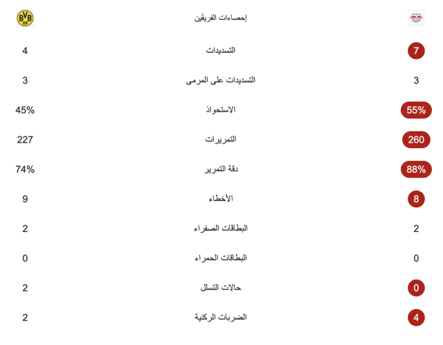 إحصائيات ساعة من مباراة بوروسيا دورتموند ولايبزيغ