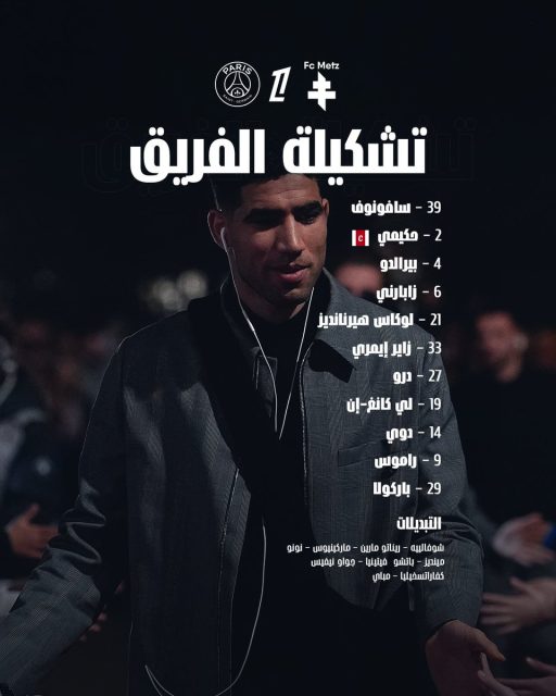 تشكيلة باريس سان جيرمان الرسمية ضد ميتز في الدوري الفرنسي