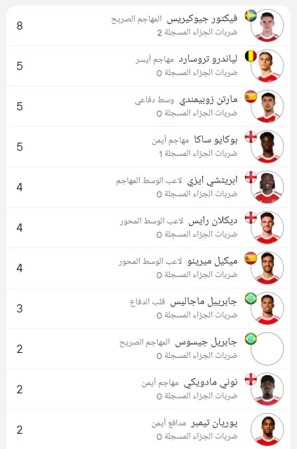 وجاءت قائمة هدافي أرسنال كالتالي :