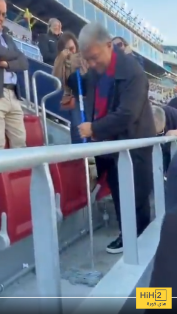 هاي كورة – قبل مباراة برشلونة ضد ليفانتي التي حسمت لصالح البارسا 3-0 ، ساعد خوان لابورتا في تنظيف المدرجات .