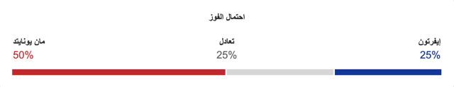 نسبة فوز مانشستر يونايتد 50%، ونسبة فوز إيفرتون 25%، ونسبة التعادل 25%.
