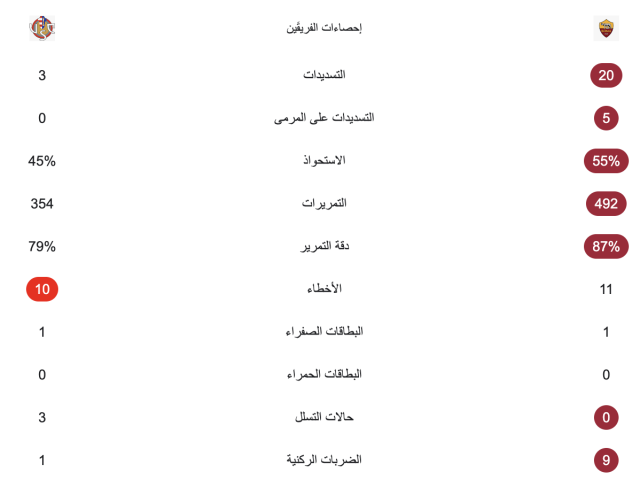 سجل هدف اللقاء الثاني اللاعب إيفان نديكا لروما في الدقيقة 77.