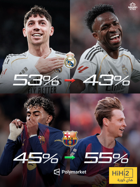 وفقًا لتحليلات الذكاء الاصطناعي، انخفضت فرص ريال مدريد للفوز بالليغا من 53% إلى 43%، بينما ارتفعت فرص برشلونة من 45% إلى 55%، ومع ذلك، تبقى 13 جولة على نهاية الموسم، بما فيها كلاسيكو محتمل في كامب نو في الجولة 35، قد يكون حاسمًا.
