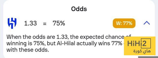 نسبة فوز الهلال في المباراة تصل إلى 77% ، فيما انقسمت الـ 23% المتبقية ما بين التعادل والهزيمة