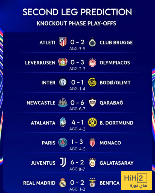 هاي كورة- كشفت التوقعات الخاصة بنتائج مباريات الاياب من ملحق التأهل للدور الثمن النهائي لدوري ابطال اوروبا عن نتائج مثيرة لا احد يمكن توقعها بالنظر الى المعطيات القبلية للمواجهات سواء من حيث نتائج مباريات الذهاب او فارق الخبرة و الامكانيات بين الناديين .