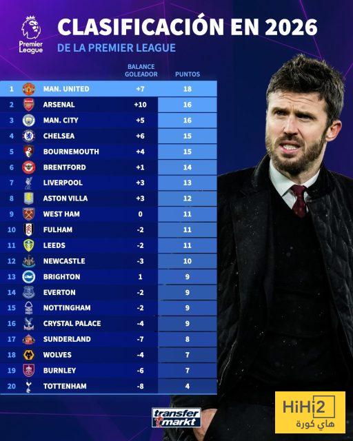 النتائج الجيدة تنصب اليونايتد على راس جدول الترتيب العام للدوري الممتاز باحتساب الجولات التي لعبت خلال العام الجديد 2026 و عددها 8.