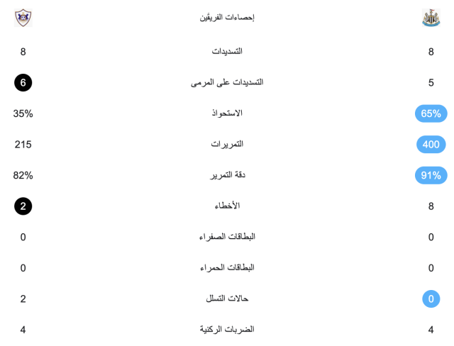 هاي كورة – انقضت ساعة من مباراة نيوكاسل يونايتد وقره باغ التي تقام في إياب ملحق الدور ثمن النهائي بدوري أبطال أوروبا.