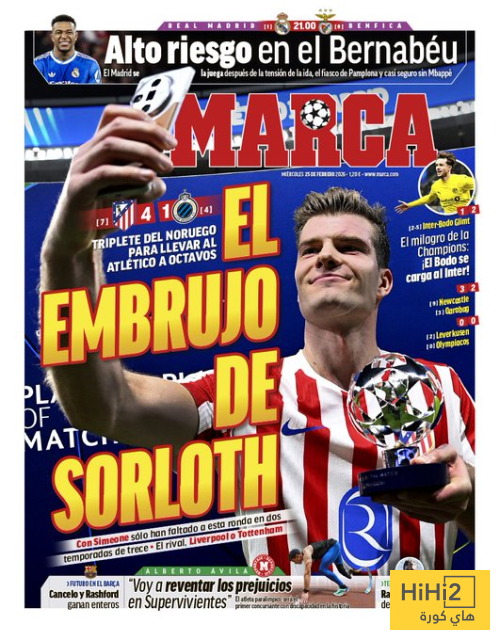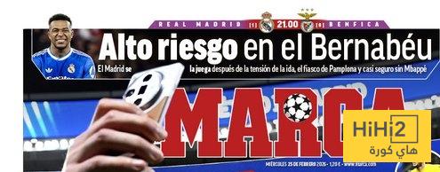 هاي كورة- خصصت صحيفة ماركا الاسبانية جزءا من غلافها لتسليط الضوء على مباراة الريال ضد بنفيكا المقررة مساء الاربعاء ، في اياب ملحق دور الـ 16 بدوري ابطال اوروبا .