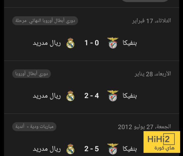 اليكم نتائج أخر 3 مباريات جمعت ريال مدريد و بنفيكا :