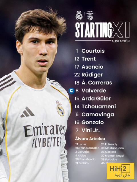 هاي كورة- اعلن ألفارو أربيلوا مدرب ريال مدريد عن تشكيلة فريقه الرسمية لمواجهة بنفيكا ، على ملعب السانتياغو برنابيو ، ضمن منافسات اياب ملحق دور الـ16 من مسابقة دوري ابطال اوروبا .