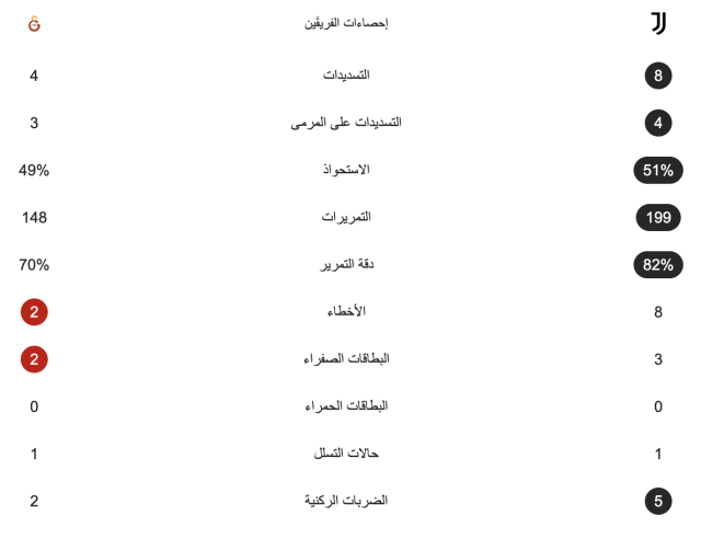 إحصائيات الشوط الأول لمباراة يوفنتوس وجلطة سراي