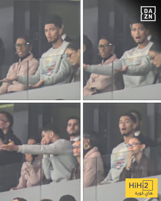 جود بيلينغهام لاعب الريال المصاب يتابع المباراة من مدرجات البرنابيو ، وبدا اللاعب الانجليزي غاضبا بعد الغاء هدف غولر لأنه يرى بانه لا يوجد تسلل .