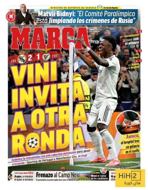 هاي كورة- تصدر فينيسيوس جونيور غلاف صحيفة ماركا الاسبانية بعد قيادة للفريق الابيض للفوز على بنفيكا 2-1 في اياب ملحق دور الـ 16 بدوري ابطال اوروبا .