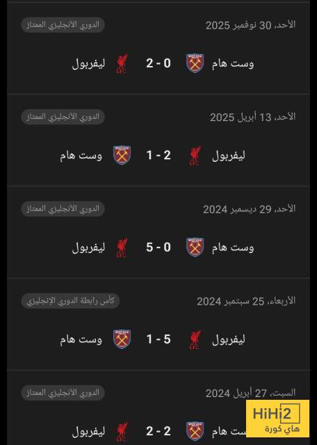 إليكم نتائج أخر 5 مباريات جمعت ليفربول و وست هام: