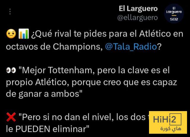 “ما هو الخصم الذي أريده لأتلتيكو مدريد في ثمن نهائي دوري الأبطال؟ الأفضل توتنهام، ولكن المفتاح هو الأتليتي نفسه، لأنني أعتقد أنه قادر على هزيمة الطرفين”.