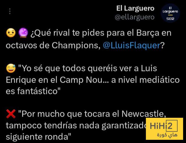 “ما هو الخصم الذي أريده لبرشلونة في ثمن نهائي دوري الأبطال؟ أعلم أنكم جميعًا تريدون رؤية لويس إنريكي في الكامب نو، على المستوى الإعلامي سيكون أمرًا رائعًا”.