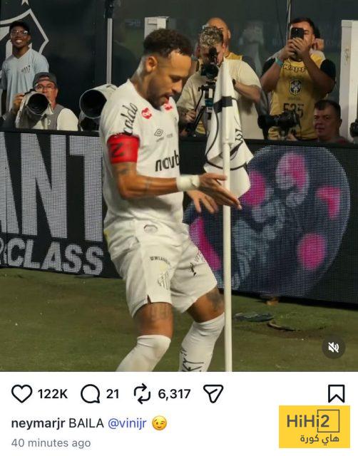 هاي كورة – احتفل النجم البرازيلي نيمار بهدفيه في مرمى فاسكو دي جاما على طريقة فينيسيوس جونيور كما نشر صورة من احتفاليته عبر حسابه على الانستغرام وعلق عليها ” أرقص يا فيني ” .