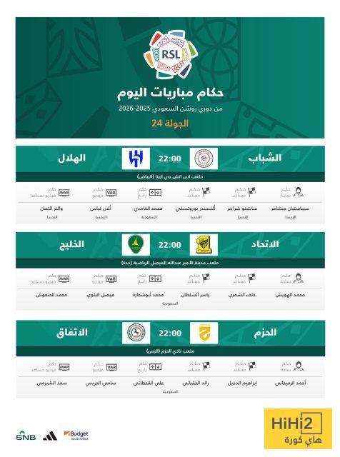 هاي كورة – أعلن الاتحاد السعودي لكرة القدم عبر حسابه الرسمي عن حكام مباريات اليوم في دوري روشن للمحترفين لموسم 2025/26 ، حيث تقام 3 مباريات ضمن فعاليات الجولة 24 .