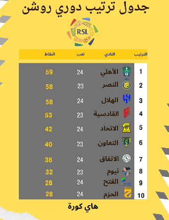 إليكم ترتيب الدوري بتصميم خاص بـ هاي كورة:
