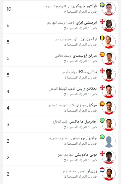 وجاءت قائمة هدافي أرسنال كالتالي :