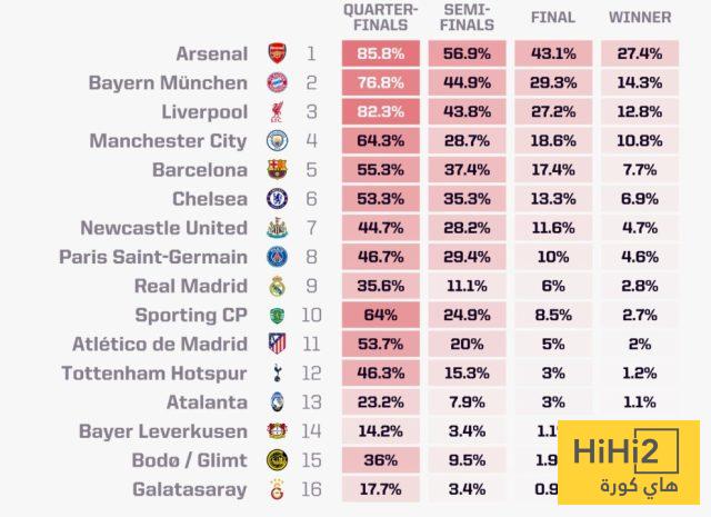 هل سيصدق الذكاء الاصطناعي ويتوج الارسنال ام ستذهب البطوله للثلاثي ( بايرن ، ليفربول و تشلسي )