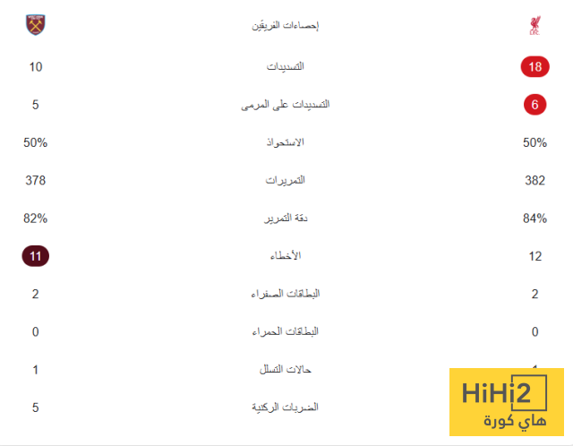 احصائيات مباراة ليفربول و وست هام في الدوري الانجليزي