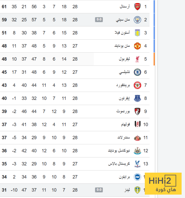 اليكم ترتيب البريميرليغ :