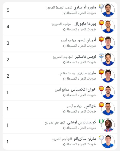 وجاءت قائمة ترتيب هدافي خيتافي كالتالي :