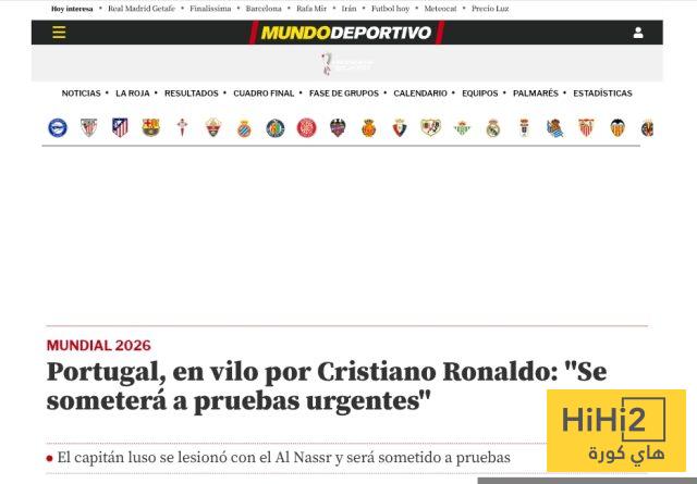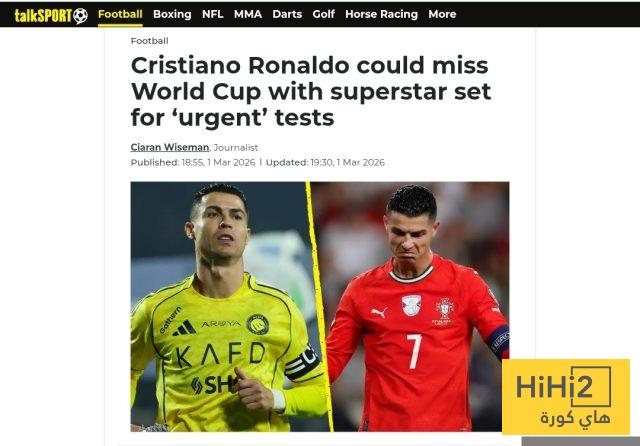” أثارت الحالة البدنية لكريستيانو رونالدو مخاوف يوم السبت عندما اضطر للخروج مصابًا خلال فوز النصر على الفيحاء بنتيجة 3-1 . ومع تبقي ما يزيد قليلاً عن ثلاثة أشهر على انطلاق كأس العالم 2026 ، يتابع المنتخب البرتغالي عن كثب الفحوصات الطبية التي سيخضع لها لتقييم مدى خطورة الإصابة ” .