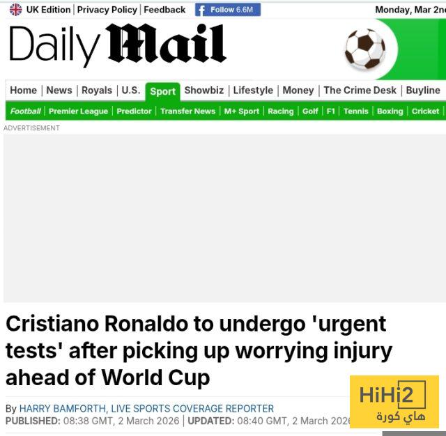 ” سيخضع كريستيانو رونالدو لـ ” فحوصات عاجلة ” لمعرفة مدى الإصابة العضلية التي تعرض لها خلال فوز النصر 3-1 على الفيحاء يوم السبت . أُجبر اللاعب البالغ من العمر 41 عاماً ، والذي أضاع ركلة جزاء خلال المباراة ، على الخروج قبل أقل من 10 دقائق من نهاية المباراة بعد أن أشار إلى دكة البدلاء بأنه شعر بمشكلة .