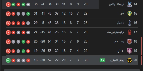 وتجمد رصيد ليفربول بهه الهزيمة عند النقطة 48 في المركز الخامس من ترتيب الدوري الانجليزي الممتاز فيما ارتفع رصيد وولفرهامبتون متذيل الترتيب الى 16 نقطة .
