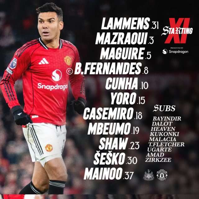 تشكيلة مانشستر يونايتد ضد نيوكاسل يونايتد في الدوري الإنجليزي