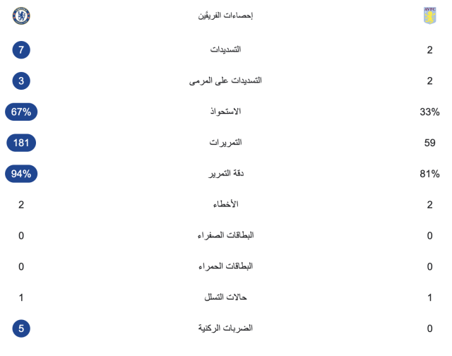 إحصائيات 30 دقيقة من مباراة تشيلسي وأستون فيلا