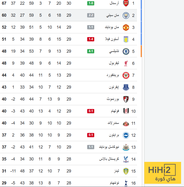 اليكم ترتيب البريميرليغ :