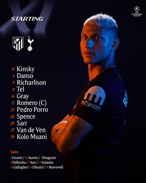 هاي كورة – كشف إيغور تيودور عن اختياراته الرسمية لتشكيلة توتنهام التي ستخوض مباراة أتلتيكو مدريد في ذهاب الدور ثمن النهائي من دوري أبطال أوروبا.