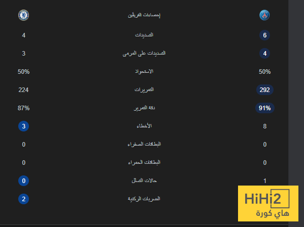 احصائيات الشوط الاول من المباراة :
