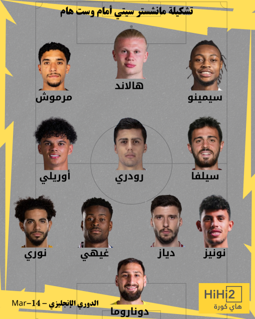 تشكيلة مانشستر سيتي المتوقعة: