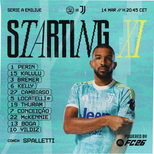 كشف لوتشيانو سباليتي عن تشكيلة يوفنتوس الرسمية لملاقاة أودينيزي في الجولة التاسعة والعشرون من الدوري الإيطالي.