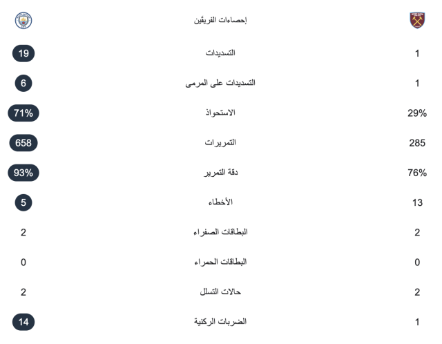 وعلى الرغم من أن إحصائيات المباراة أشارت إلى تفوق السيتي بشكل كامل على منافسه، لكنهما اقتسما نتيجة المباراة في نهاية الأمر.