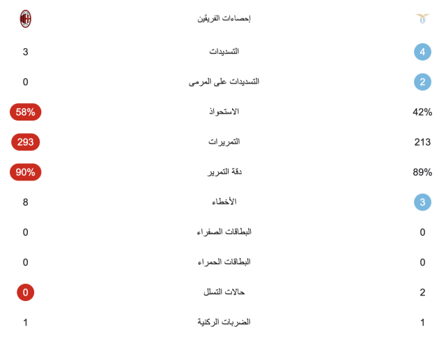 إحصائيات الشوط الأول: