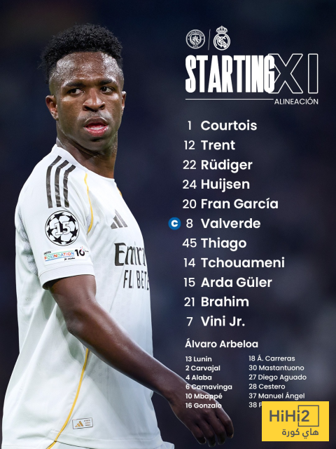 اعلن ألفارو أربيلوا مدرب ريال مدريد عن تشكيلة فريقه الرسمية لمواجهة مانشستر سيتي ، على ملعب الاتحاد ، ضمن منافسات اياب دور الـ16 من مسابقة دوري ابطال اوروبا .