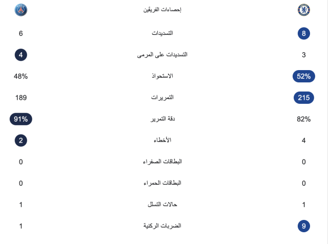 إحصائيات الشوط الأول: