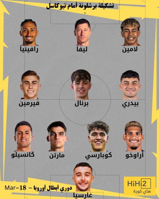 كشف موقع هاي كورة عن تشكيلة برشلونة المتوقعة لمواجهة نيوكاسل يونايتد في إياب ثمن نهائي دوري الأبطال ، حيث سيلتقي الفريقان مساء اليوم الأربعاء وفق التوقيت المدرج في جداول الموقع لكل دولة حول العالم .