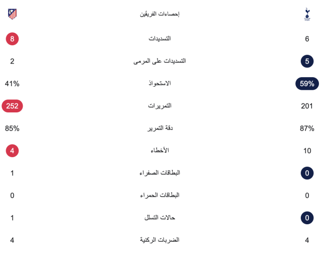 ويقدم توتنهام مباراة دفاعية كبيرة أمام هجمات أتلتيكو مدريد، كما أنه نجح في استغلال تحولاته الهجومية لتسجيل هدف السبق.